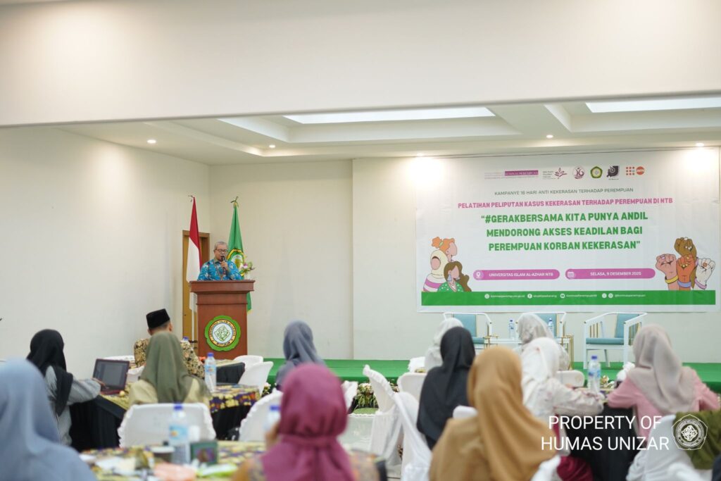 UNIZAR NEWS, Mataram — Aula Abdurrahim Universitas Islam Al-Azhar (UNIZAR) menjadi ruang penting bagi upaya penguatan peliputan isu kekerasan terhadap perempuan di Nusa Tenggara Barat. Pada Selasa (9/12/25), Komisi Nasional Anti Kekerasan terhadap Perempuan (Komnas Perempuan) berkolaborasi dengan UNIZAR dan Aliansi Jurnalis Independen (AJI) NTB menyelenggarakan Pelatihan Peliputan Kasus Kekerasan terhadap Perempuan di NTB dengan mengangkat tema “Kita Punya Andil Mendorong Akses Keadilan bagi Perempuan Korban Kekerasan.” Kegiatan ini merupakan bagian dari rangkaian Kampanye 16 Hari Anti Kekerasan terhadap Perempuan (16 HAKTP) yang berlangsung setiap tahun pada 25 November hingga 10 Desember.